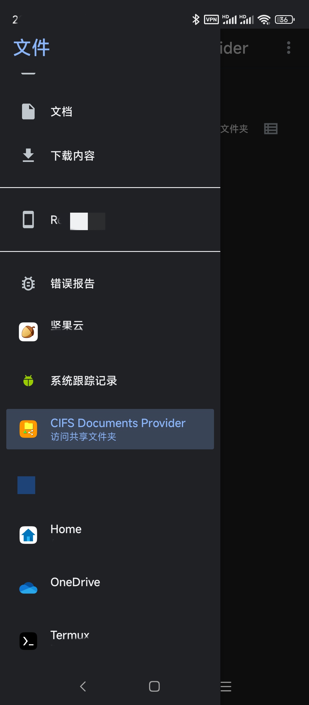 - 在系统中注册DocumentsProvider,所有离线可用文件都可通过如图的系统自带文件管理读写并同步,类似OneDrive、坚果云等同步网盘