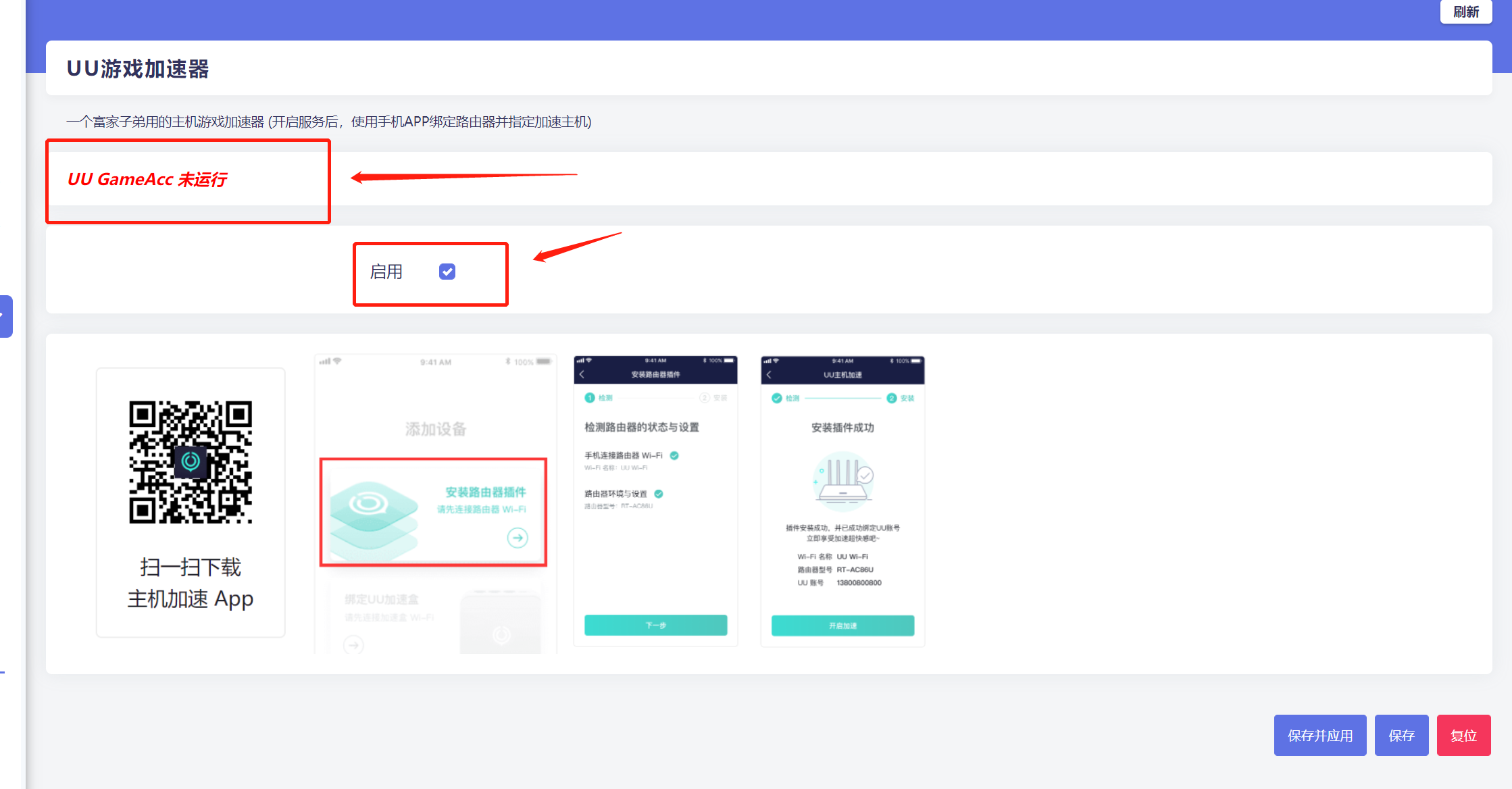 系统固件是最新版本,安装后无法运行UU游戏加速器