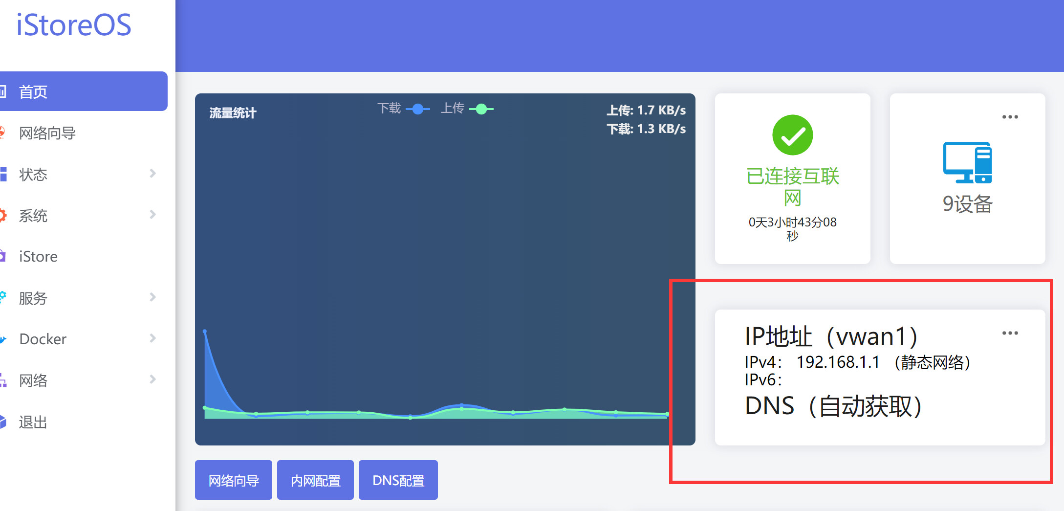 首页的 WAN 口信息识别错误,安装了多拨插件,单线双拨,虚拟WAN口识别成路由IP,且流量只监测一个WAN口非全部流量,建议可以设置br-lan LAN口流量监测