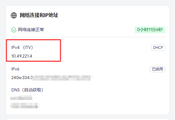求助各位大佬,目前首页连接信息为ITV口dhcp获取的v4地址,和wan_6口dhcpv6获取到的v6地址(如图),经尝试删除itv接口,首页可正确显示wan口ipv4/v6信息,请问如何操作才能在首页正确显示WAN口IPv4信息。