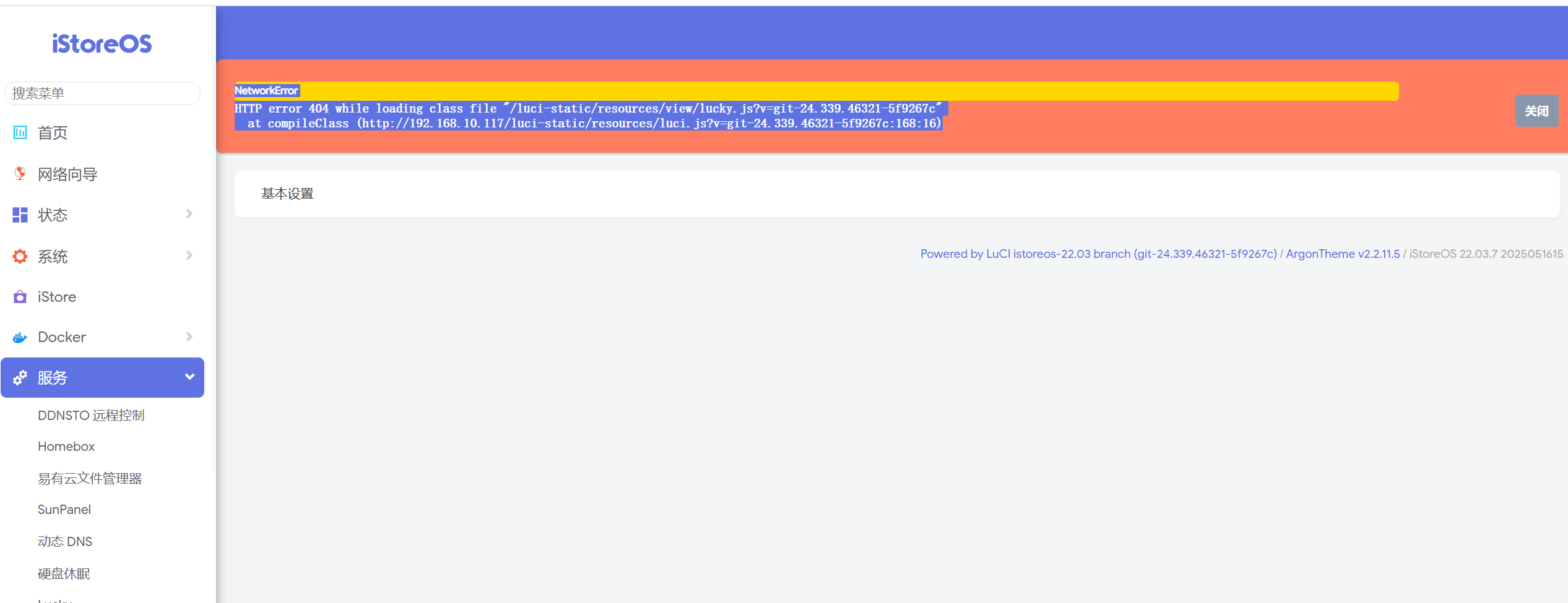 istoreOS的软件中心里升级了Lucky v2.19.4,服务菜单下面lucky报 NetworkError HTTP error 404 /luci-static/resources/view/lucky.js