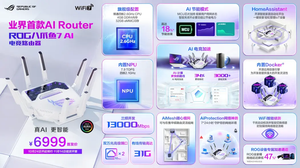 【20251016】新闻:华硕发布业界首款AI路由器:ROG八爪鱼7 AI,内置NPU