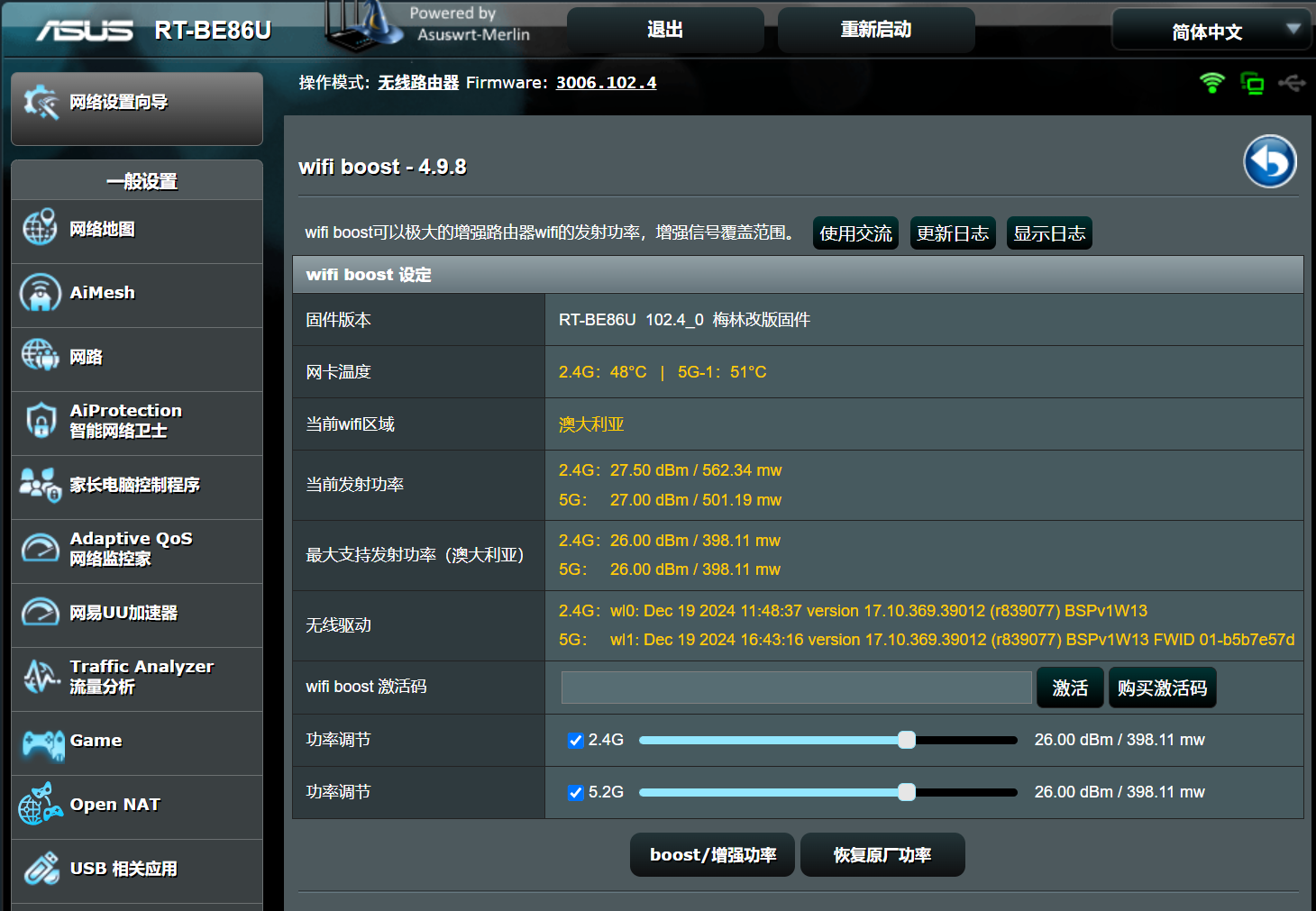 be86UWiFi boost功率显示问题不准何时修复?