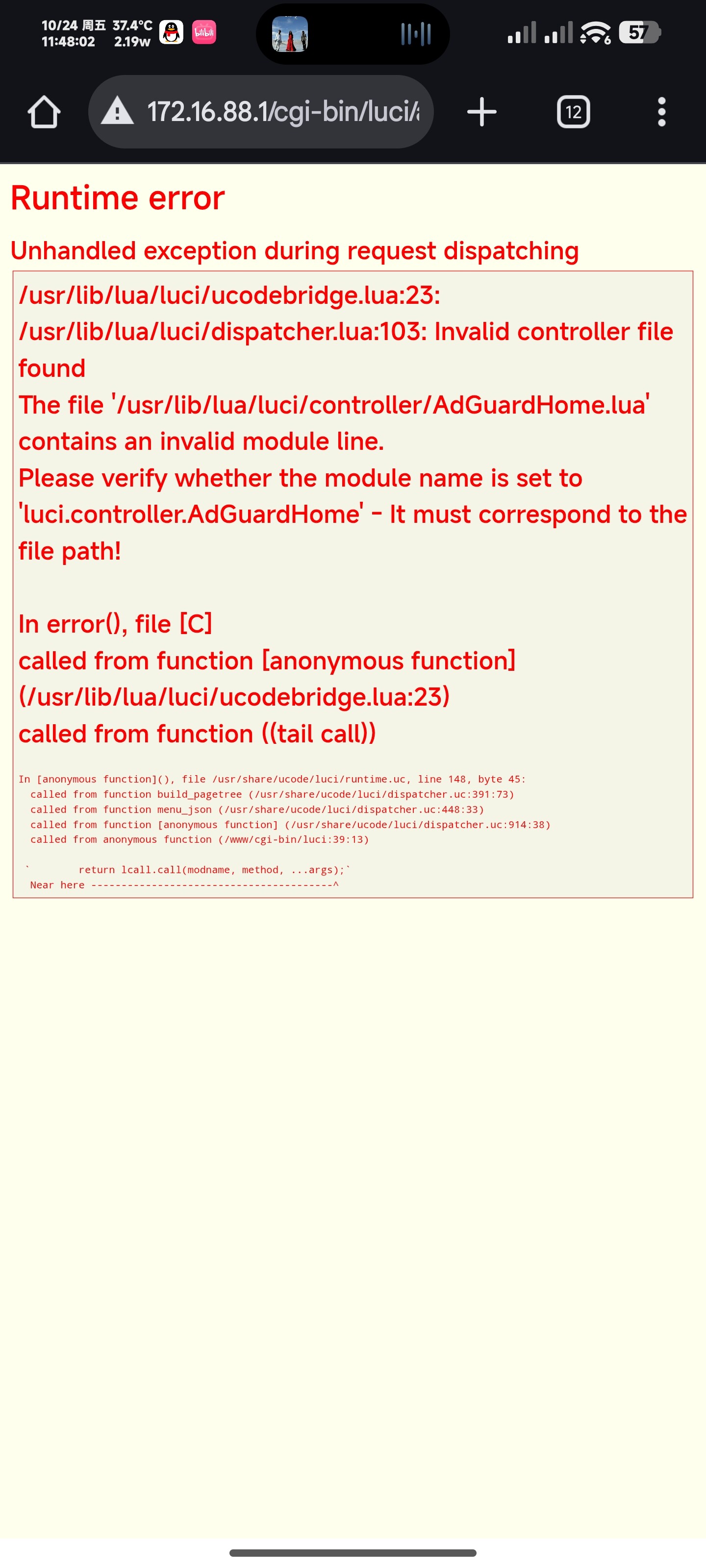进入WEB界面之后进不去,会出现如图所示的东西,之前都没问题,我想请问一下大佬们如何解决