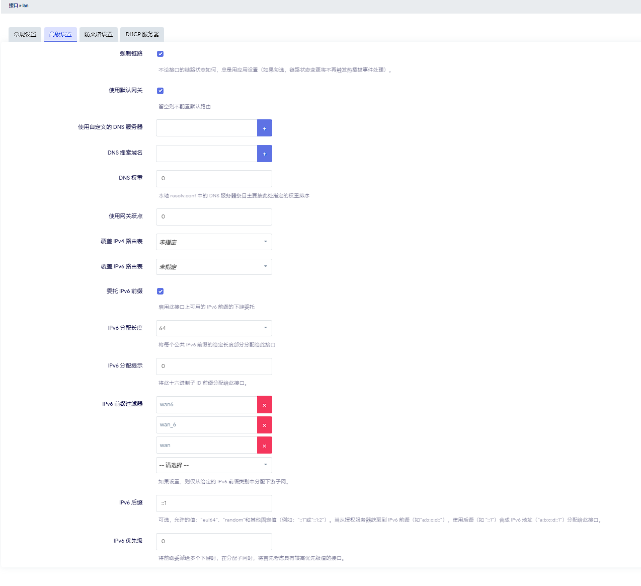 设置上应该没问题,LAN口就是没有IPV6地址,不知道怎么回事,大佬帮忙看看