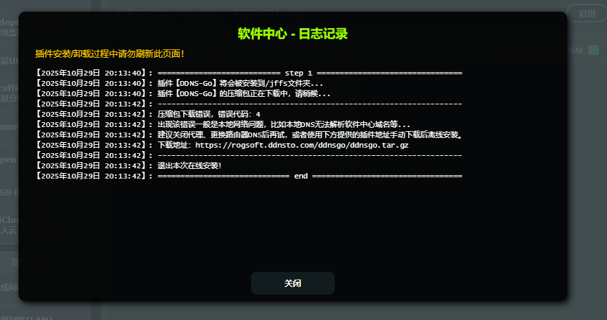 软件中心压缩包下载错误,错误代码:4