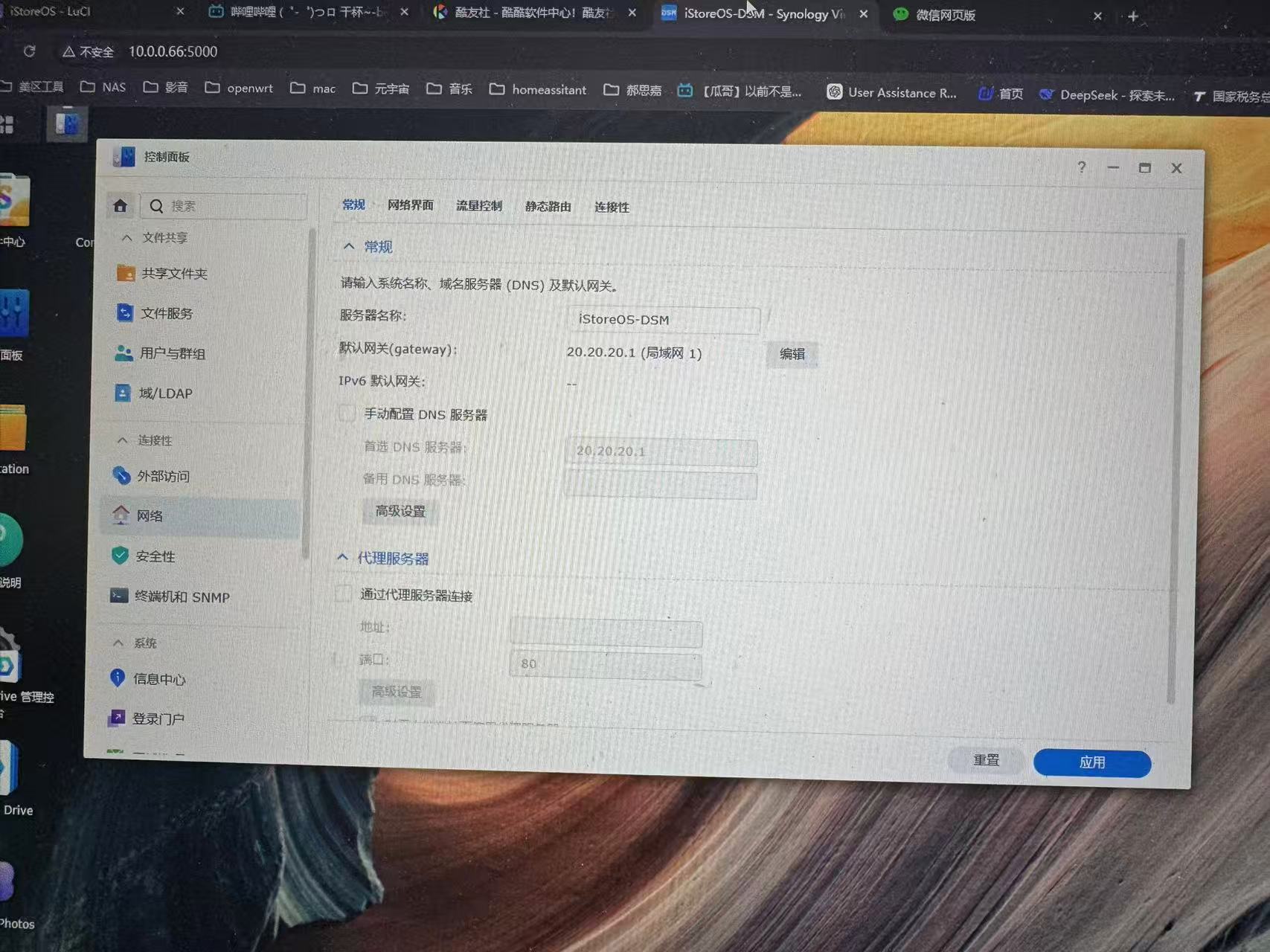 群晖界面设置了局域网IP 10.0.0.66 通过10.66可以访问 但是在群晖网络里面看到的地址是20.20.20.1如果更改这个IP后群晖就会进不去 这个应该是Docker网络配置问题但是不知道哪里配置请指教谢谢。