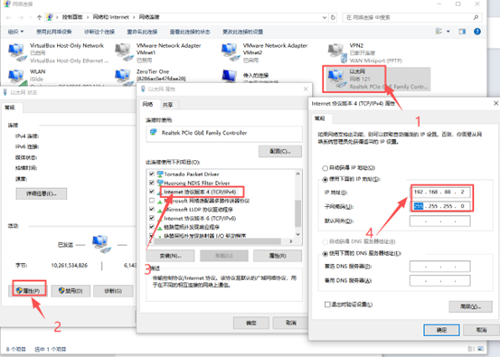 (4)修改与AC相连的电脑网卡IP地址为192.168.88.2