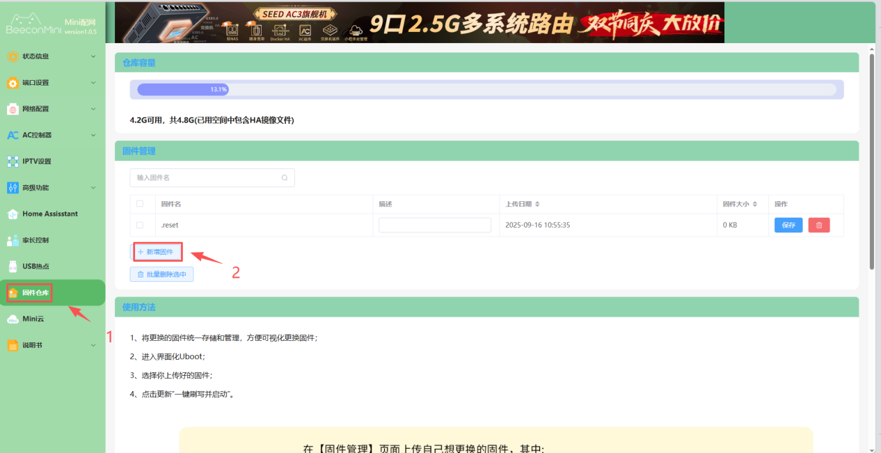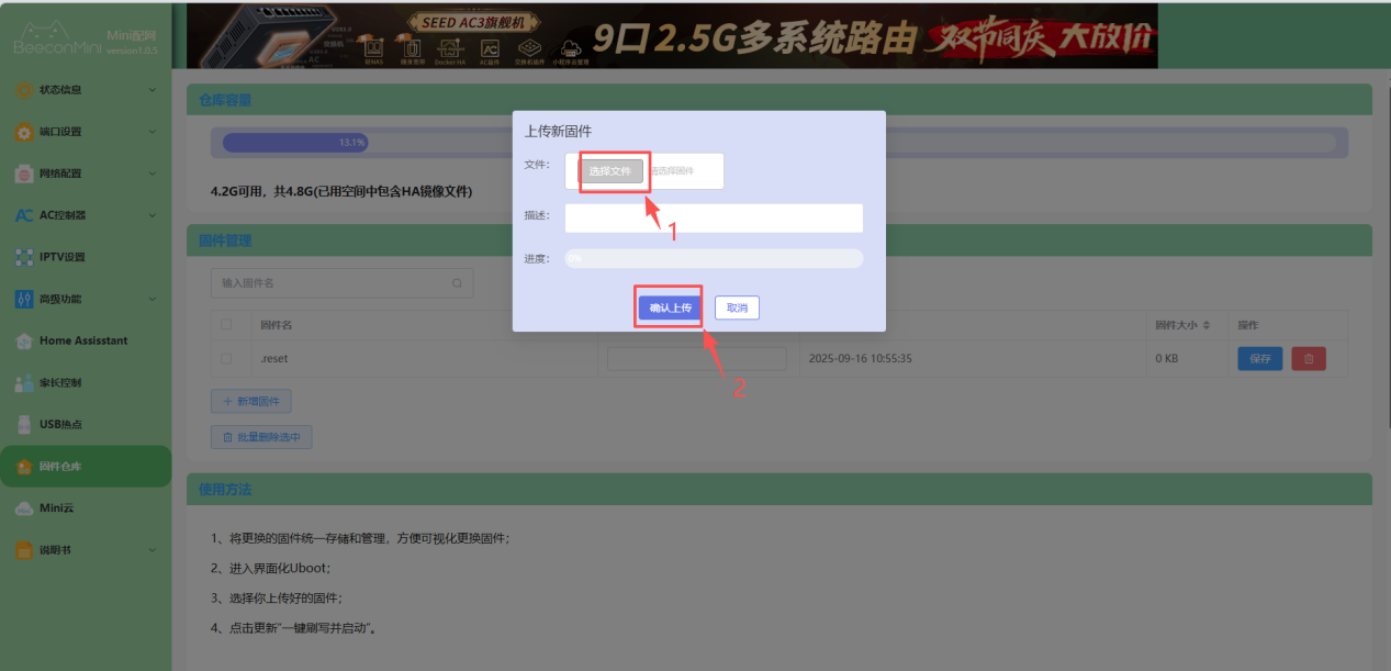 打开浏览器输入http://192.168.88.1/ 即可进入Uboot页面