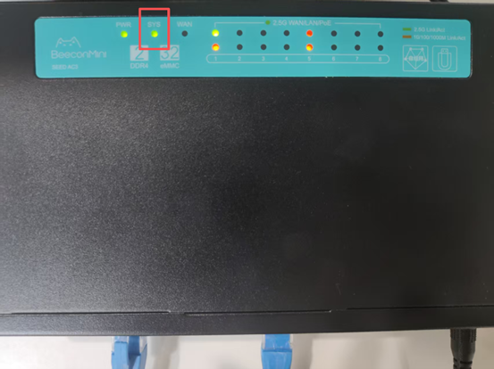 (3)观察sys指示灯由闪烁变成常亮后,松开reset按键