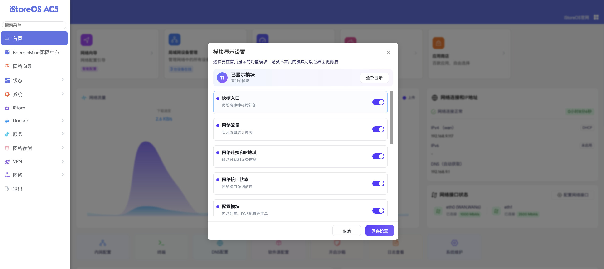 同步istoreos新首页(可自定义显示/隐藏模块,入口首页右上角图标)