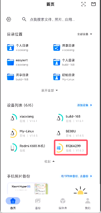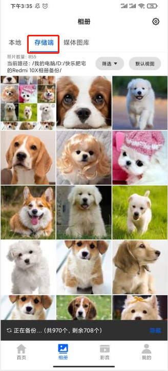 - 备份好的照片在【存储端】下可见,也会显示是备份在哪个设备上的;