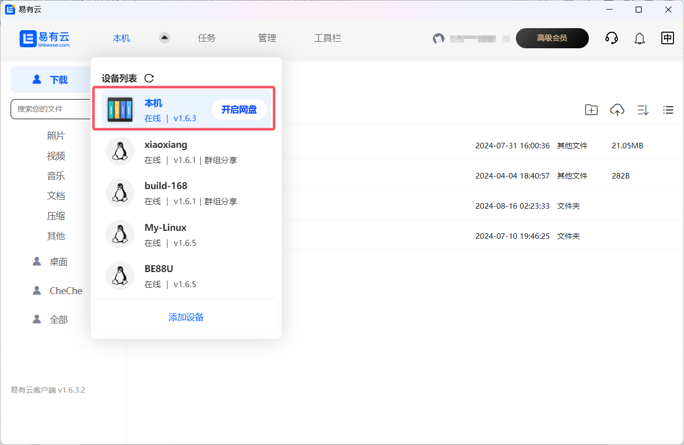 - 成功开启网盘后,我们可以看到【本机】;