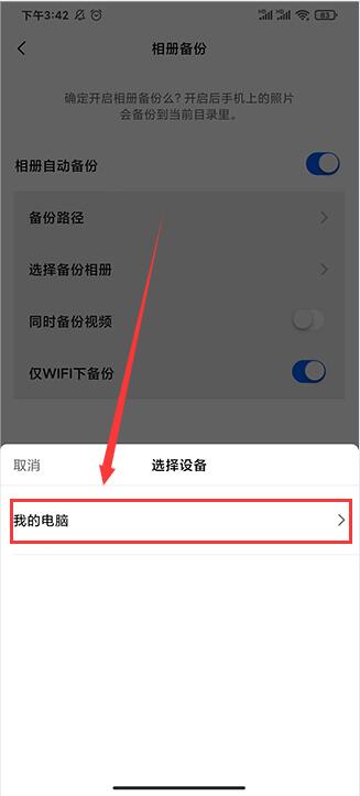 - 选择备份的路径(安装了易有云客户端,即:照片/视频的备份位置 ),设备选择配置好的网盘;