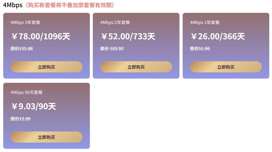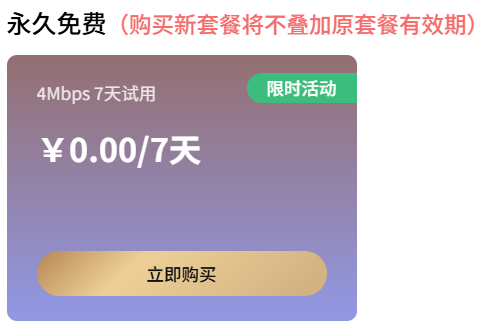 年套餐低至26元,当然我们也有7天试用套餐给大家尝鲜体验。