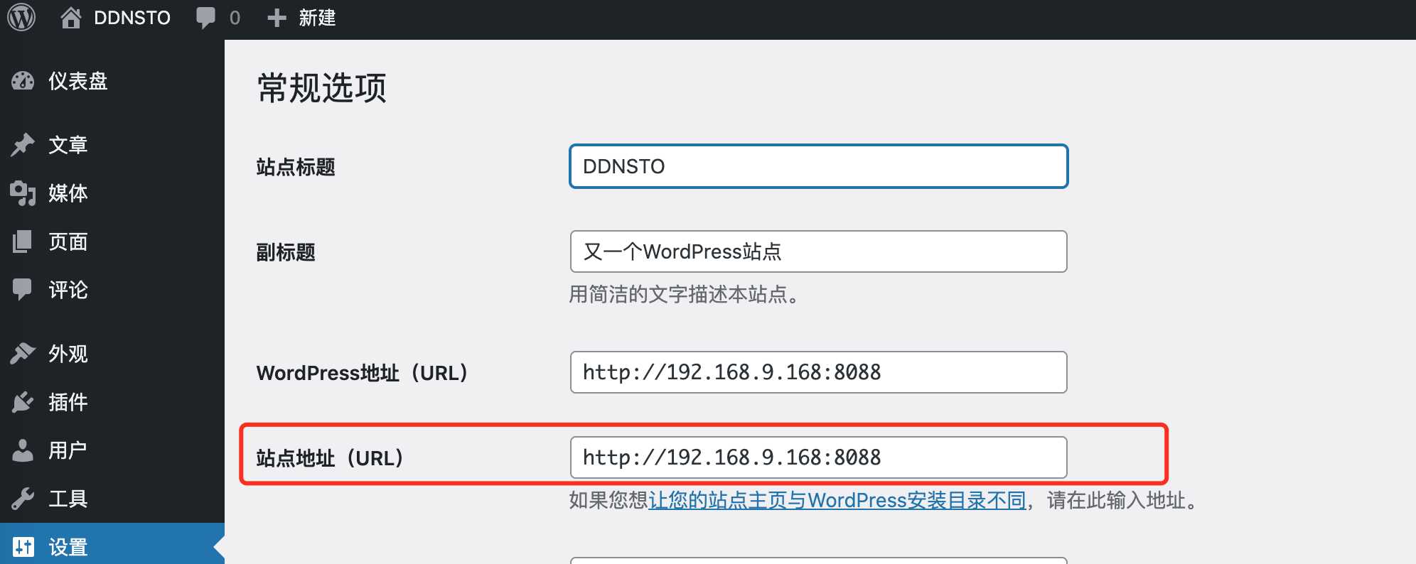 A: wordpress需要配置“站点地址”和ddnsto域名相同。