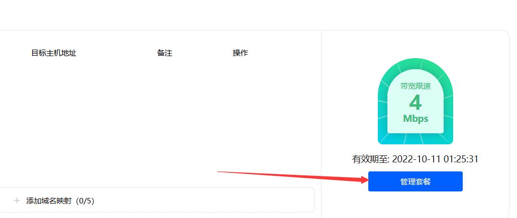 A:登录进ddnsto控制台,绑定设备后,右边会有“管理套餐”的图标,点击出现弹窗,点击购买新套餐,按需购买套餐。