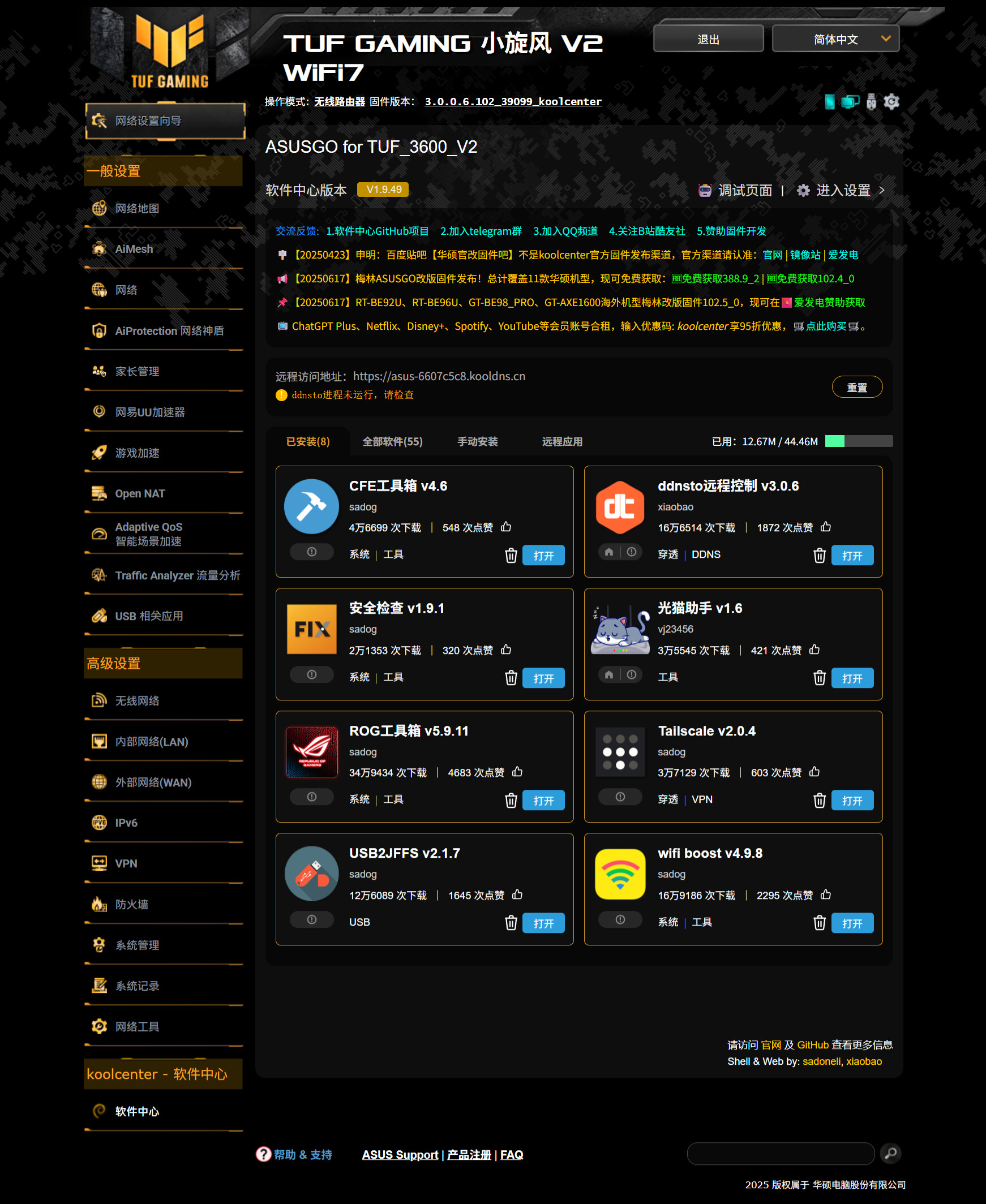 广告:固件/软件中心维护不易,如果您支持我们的工作,可以考虑购买软件中心的DDNSTO、易有云或者wifiboost,以支持开发者,谢谢!