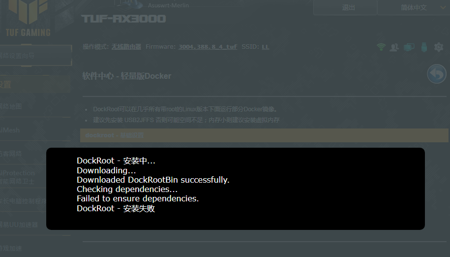 求大神赐教,Tuf-ax3000安装不上dockroot