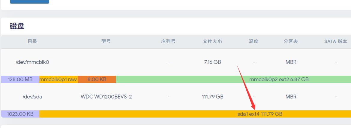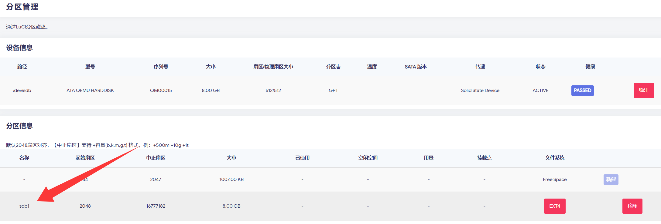 - 就会看到磁盘的相关信息,这里有2个按钮,一个是「EXT4」按钮,一个是「移除」;