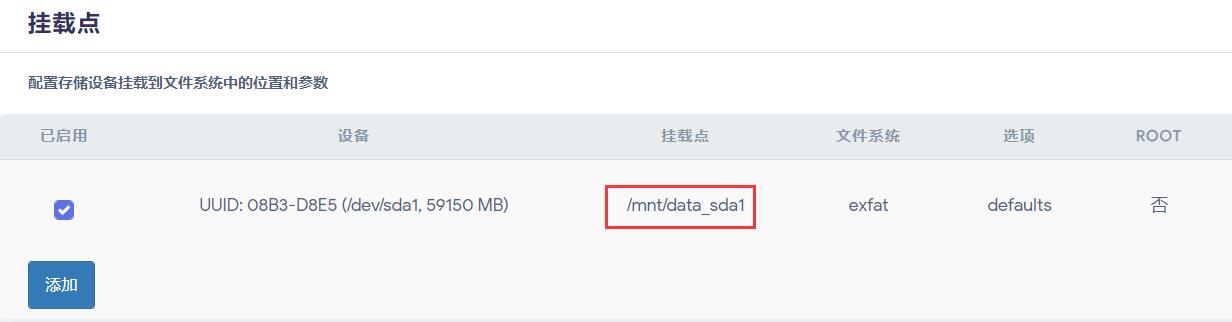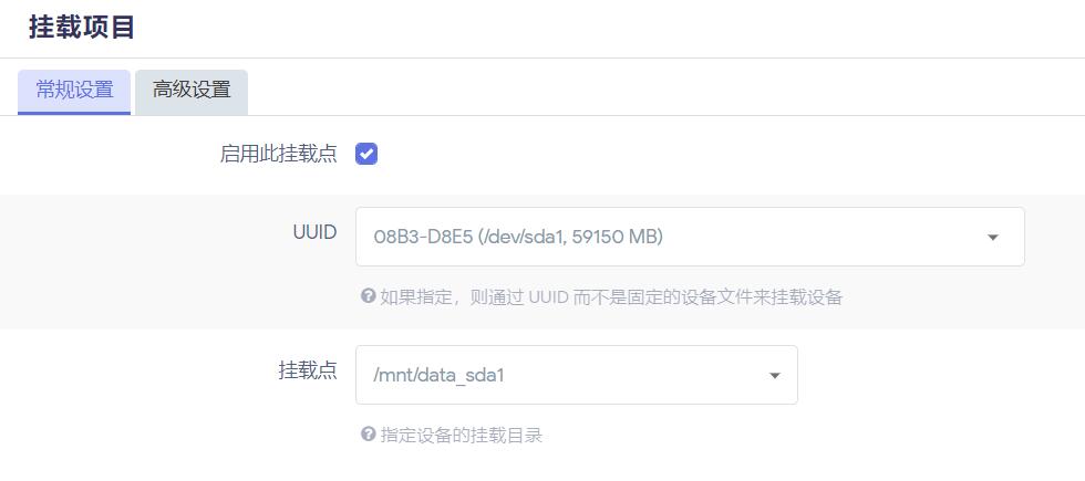 - 4.启用挂载点,保存应用,这样挂载点就不会变动了。设置好以后,建议重启下机器。