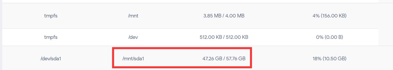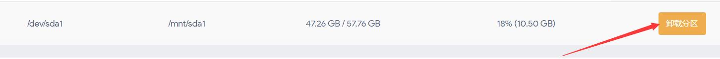 如果要格式化/dev/sdb这块磁盘,查看「挂载点」下方/dev/sdb开头的设备有多少个挂载点,如果一块磁盘分了多个区,就会有多个挂载点,如上图,只分一个区,就只有一个挂载点;