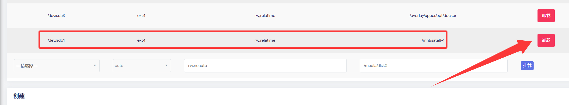 到此磁盘挂载成功,如果需要修改挂载点(如/mnt/sata8-1),参考前面的“手动挂载”教程,先卸载再自定义挂载点。