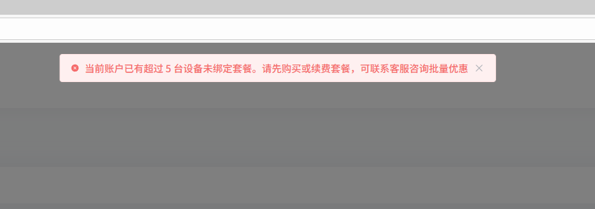 如果出现以下错误, 可以删除暂时不用的设备,或续费已过期的设备套餐