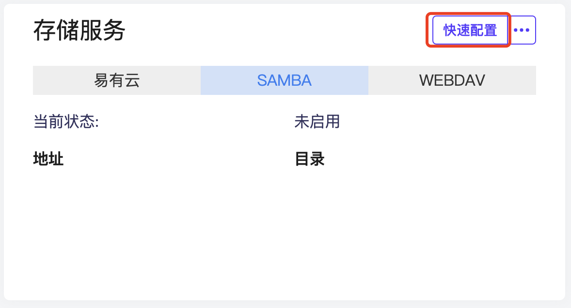 1.进入管理界面,存储服务点击快速配置;