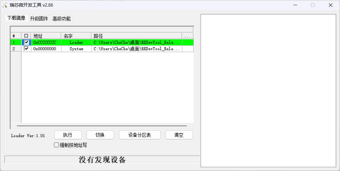2.2:RKDevTool_Release_v2.86.zip刷机工具下载后,解压,并打开刷机程序RKDevTool.exe;