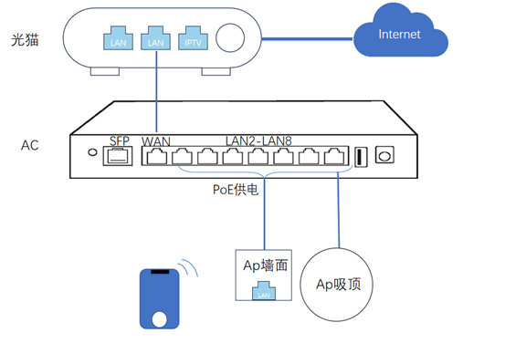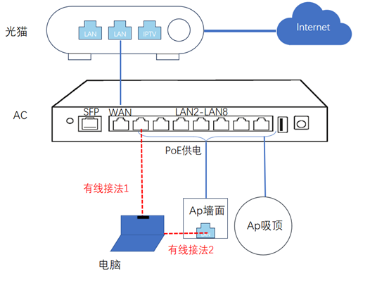 1.电脑网口有线直连AC的LAN口或者电脑直连AP的LAN口(电脑需要带网口)