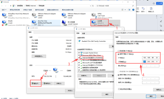 (4) 如果网络配置中没有获取到IP,则修改静态IP进入后台再次尝试。