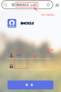 2.搜索连接BM_XX开头wifi。浏览器打开输入192.168.88.1 默认用户名:root 默认密码:password