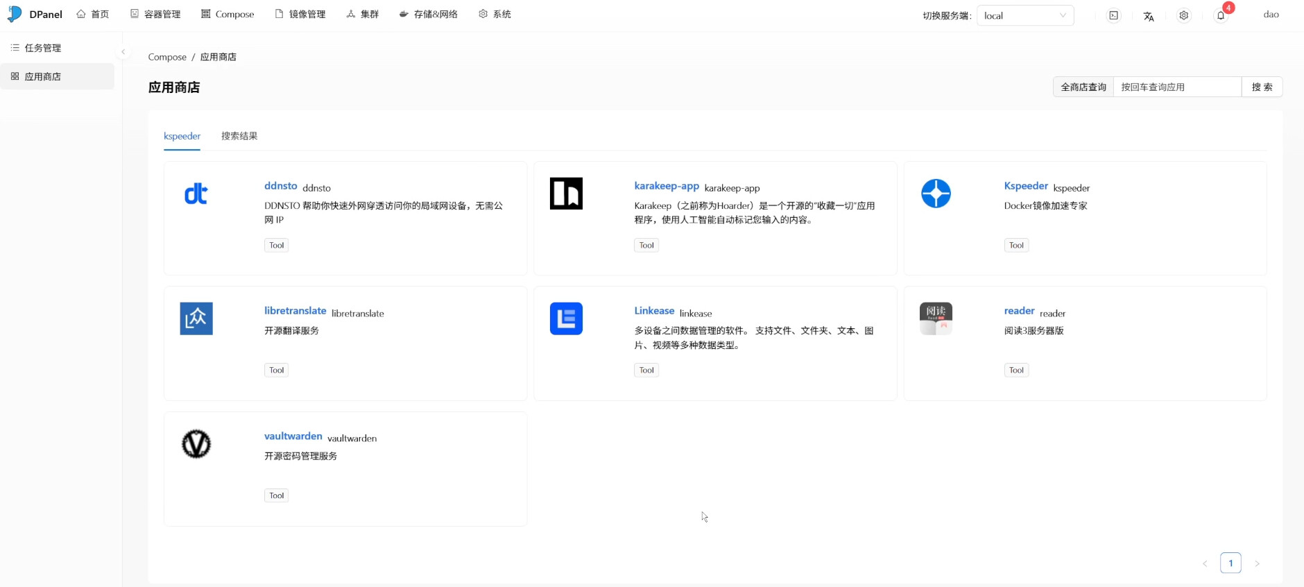 可以添加“应用商店”方便部署Docker项目,比如添加kspeeder-store: