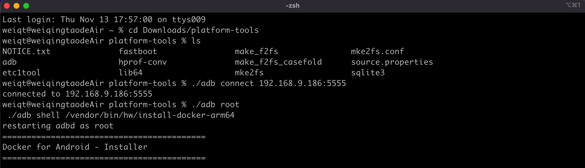 ./adb shell /vendor/bin/hw/install-docker-arm64