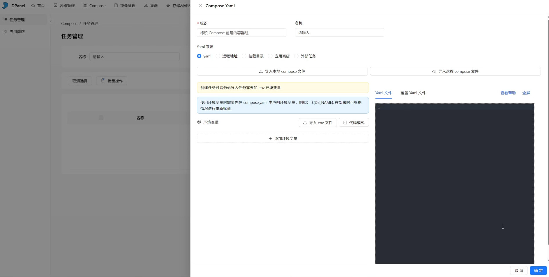 创建完成,即可进入Dpanel,就可以开始部署Docker项目了。