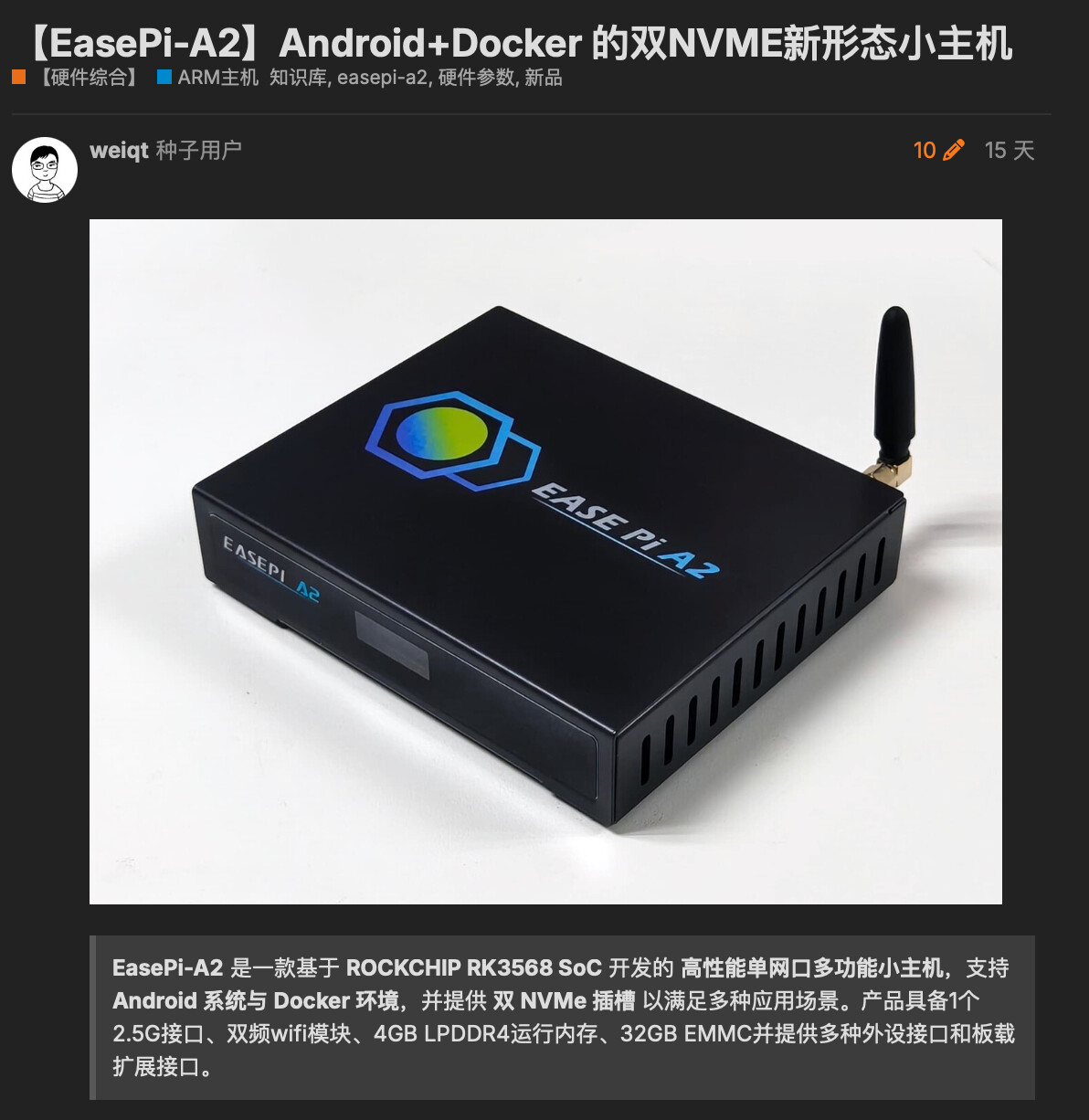 更多详情请看帖子:【EasePi-A2】Android+Docker 的双NVME新形态小主机