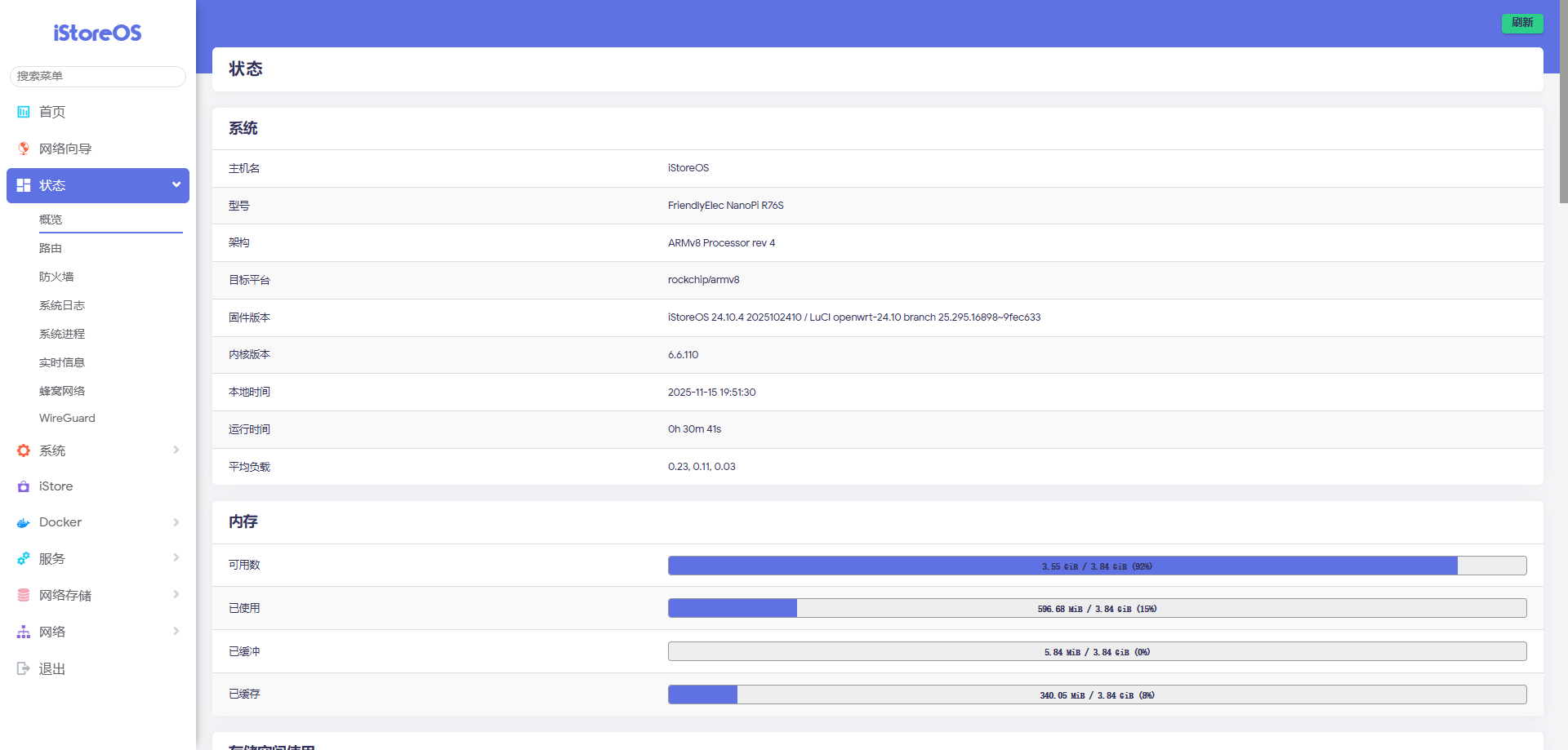 l 第三方固件:istoreos-24.10.4-2025102410-r76s-squashfs提示:你可以用其他的第三方固件,我这里用的是:istoreos