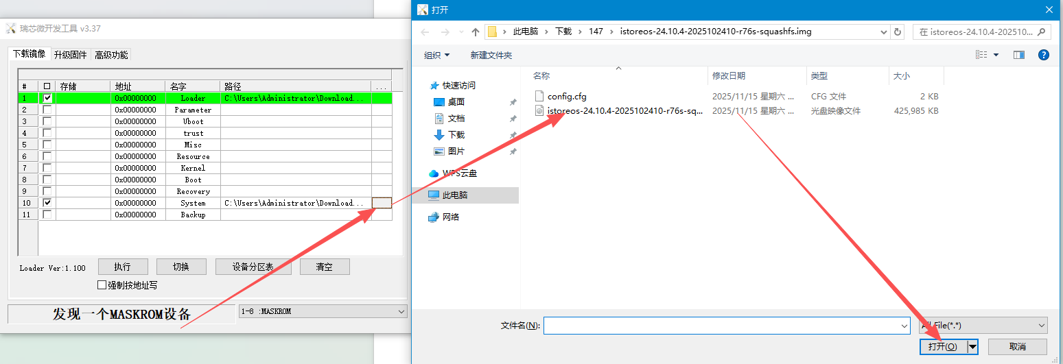 一点废话:本来是想用自带TF卡的4G内存版本的,结果只有3G版,无奈只能买了4G版64G emmc,本来刷玩客云OECT,就对瑞芯微线刷恶心死了。做好了心理准备,但是看官网还有iStoreOS教程,都很简单,结果今天收到货,果然全是坑,官方的教程,只能安装他自己的,iStoreOS根本安装不了。iStoreOS教程也不行,我都怀疑写教程的,应该没有在r76s这个设备上操作过。不然的话,按照教程不会有这么多错误。
