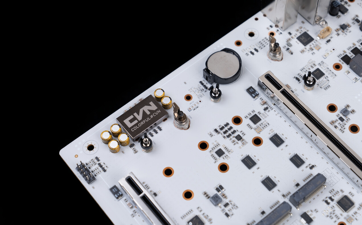 特别值得一提的是,在2000元价位段中配备一体式背板的主板并不多见,CVN X870E ARK FROZEN V14 方舟主板搭载的全覆盖白色强化保护背板,既能在物理层面防护背面元器件、避免装机过程中的意外划伤,又能辅助散热以提升长期运行稳定性,真正实现“颜值”与“实用性”在细节层面的完美融合。