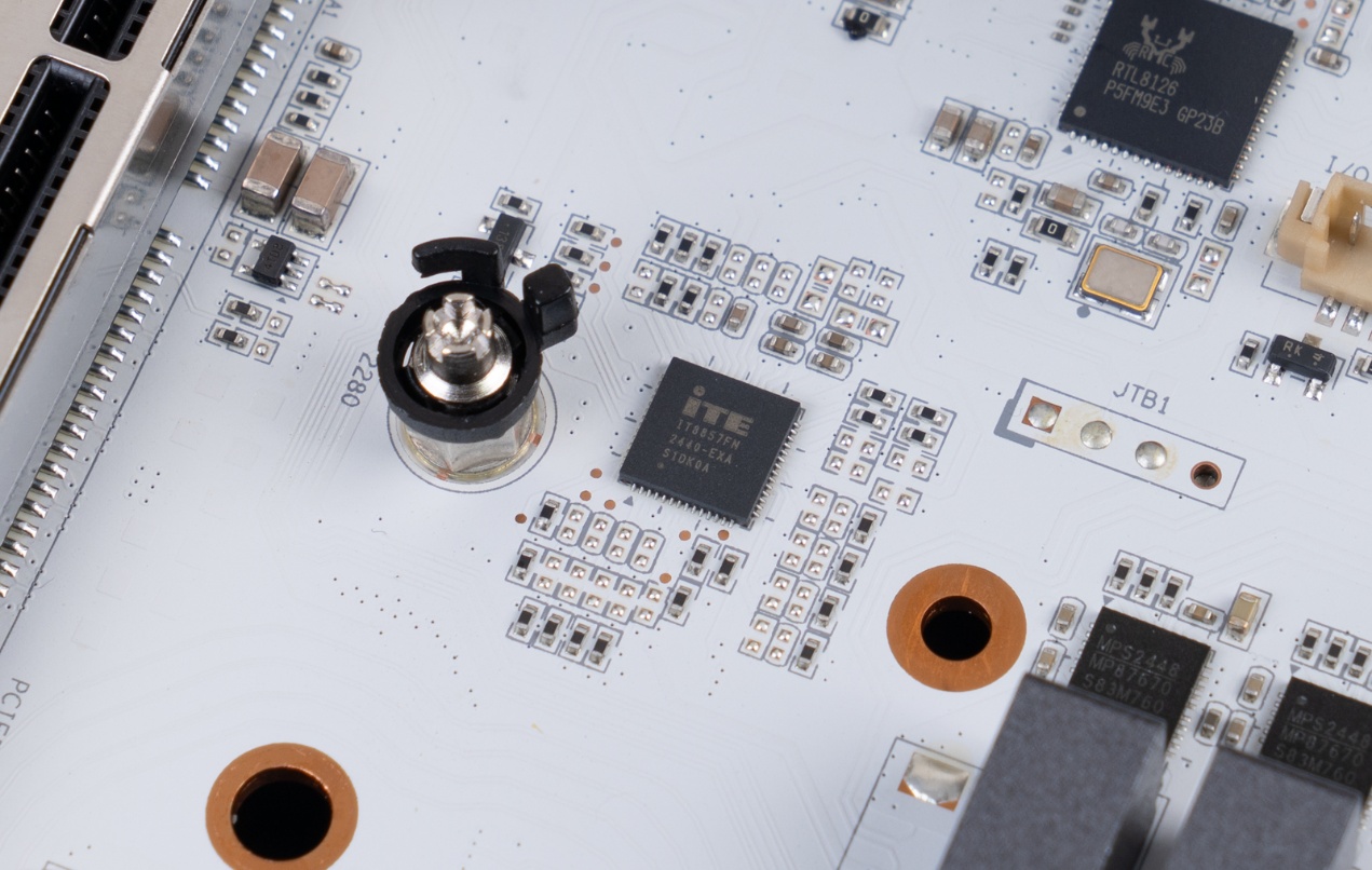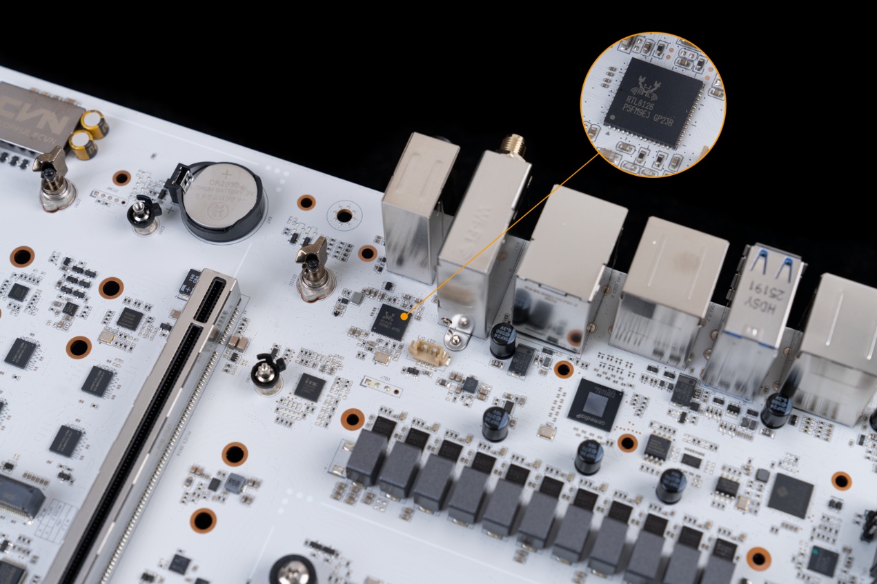▲RTL8126,5Gbps网卡芯片,支持5G/2.5G/1000/100/10Mbps自适应速率,为主板背面的RJ45端口提供支持。