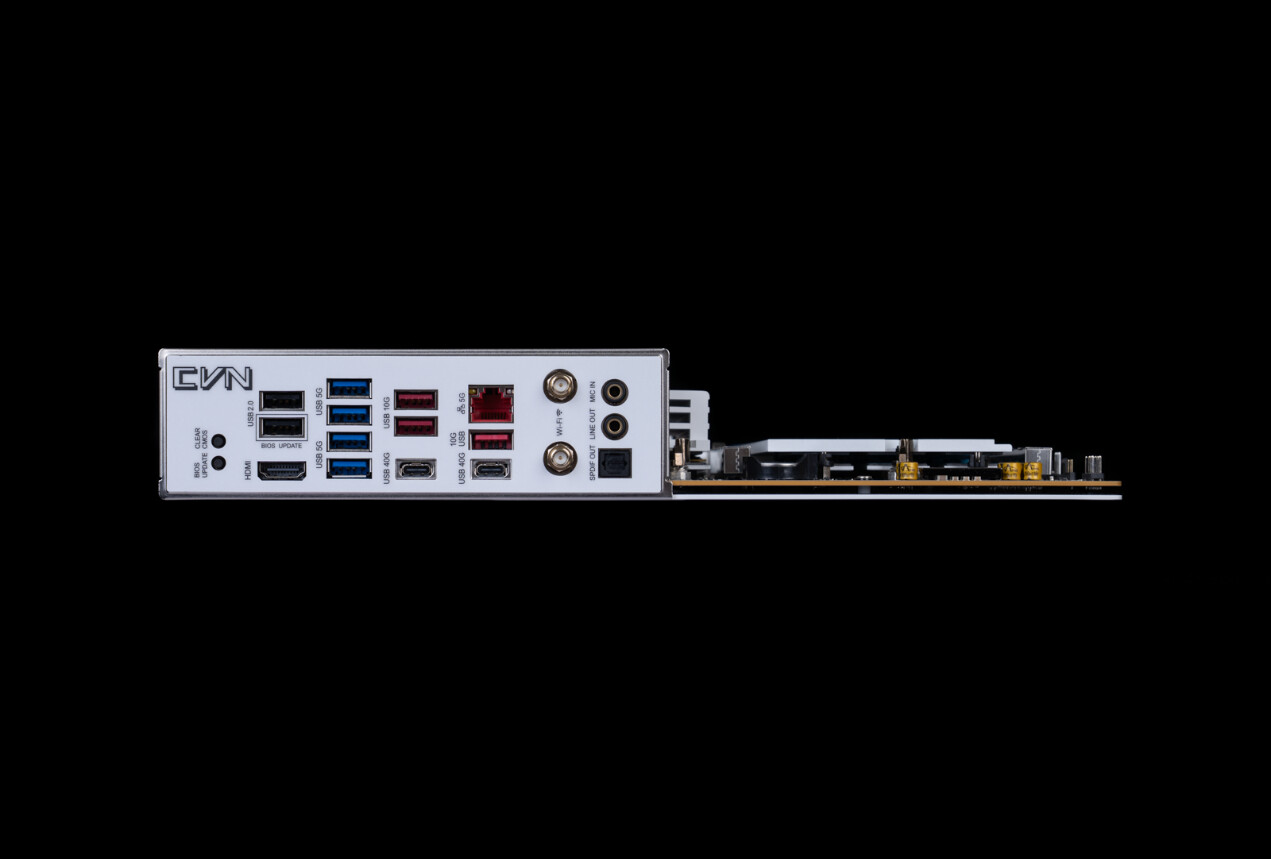 ▲CVN X870E ARK FROZEN V14方舟主板配备HDMI视频接口,5G有线网络接口和WIFI7无线网卡,多组 USB 3.2、USB 2.0 接口,更有2个USB4 40Gbps Type-C接口。