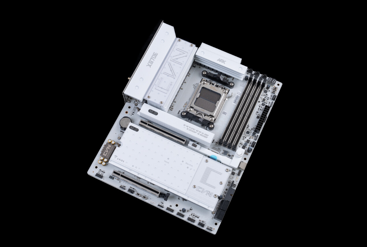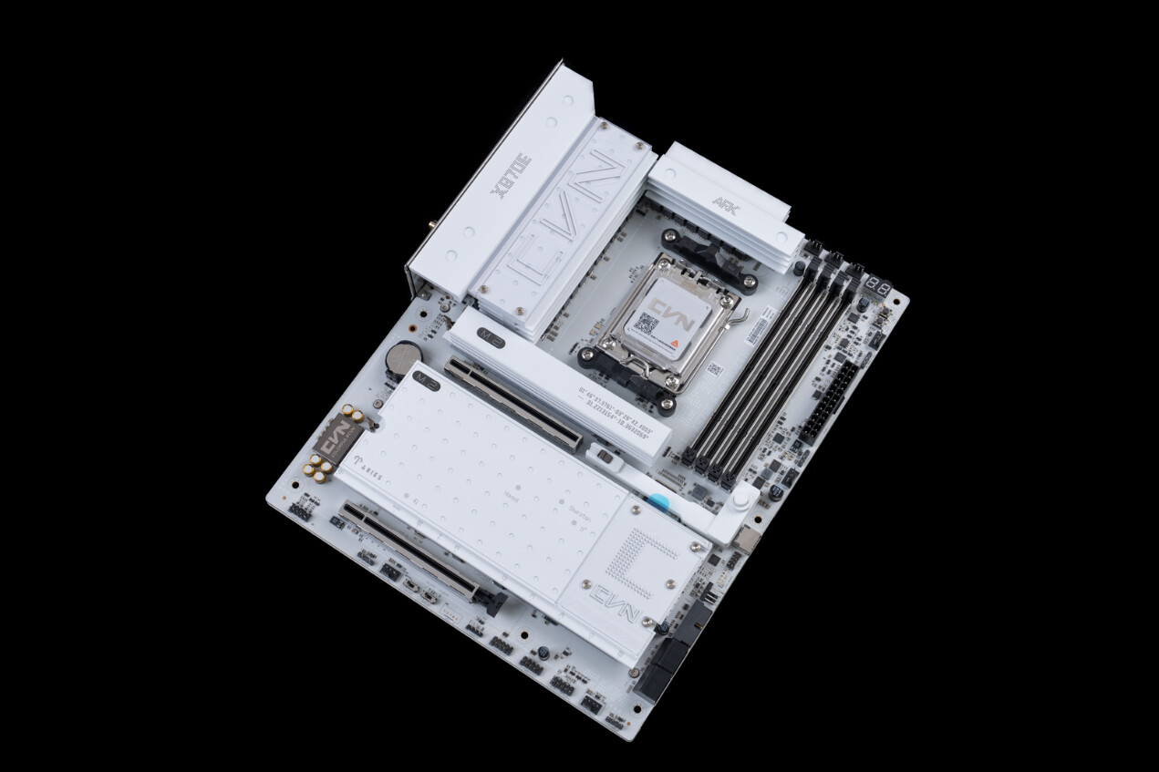 - CVN X870E ARK FROZEN V14方舟主板采用CVN系列独家定制白色PCB,搭配全面升级的PCB雾化工艺,不仅视觉上更显精致通透,还能有效避免指纹残留。