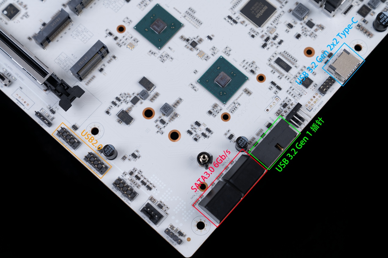 ▲扩展性方面,CVN X870E ARK FROZEN V14方舟主板配备了2个SATA3.0接口,2个USB2.0插针(可扩展4个USB 2.0接口),1个USB 3.2 Gen 1插针(可扩展2个USB 3.2 Gen 1 Type-A接口)以及一个1个USB 3.2 Gen 2x2 Type-C 插槽(可扩展2个USB 3.2 Gen2 Type-C接口,支持30W PD快充)。