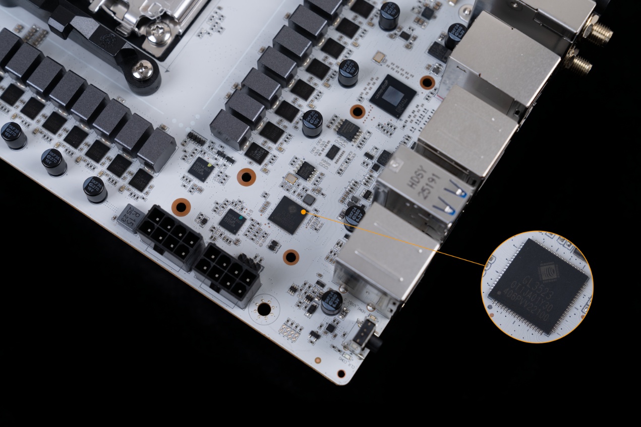 ▲GL3523,USB 3.1集线器控制器,为后置USB3.2 gen1 5Gbps接口的HUB扩展提供支持。