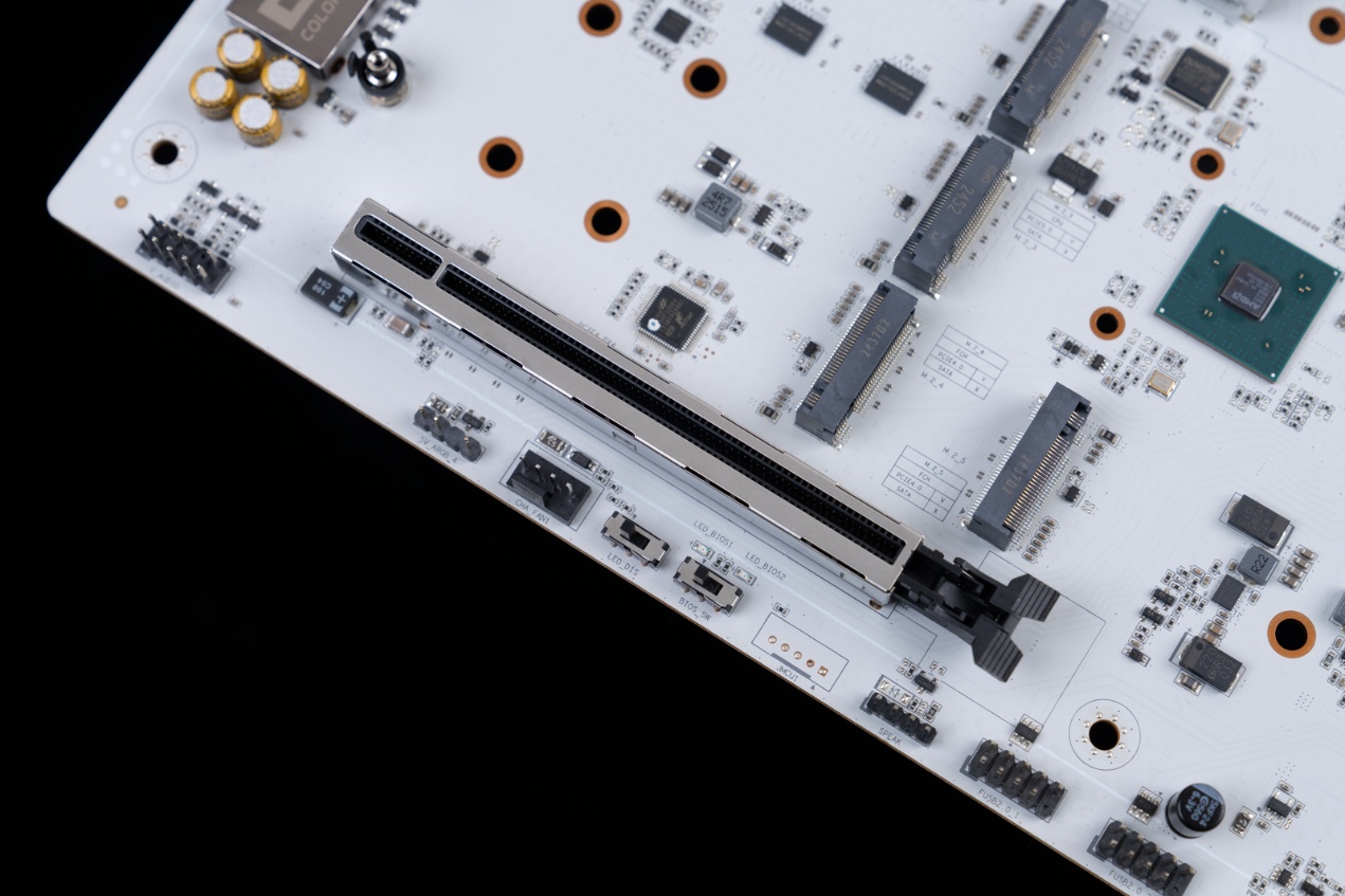 - PCIe5.0 x16插槽做了合金加固,并给PCIe5.0 x16插槽加入了第二代显卡快拆装置。