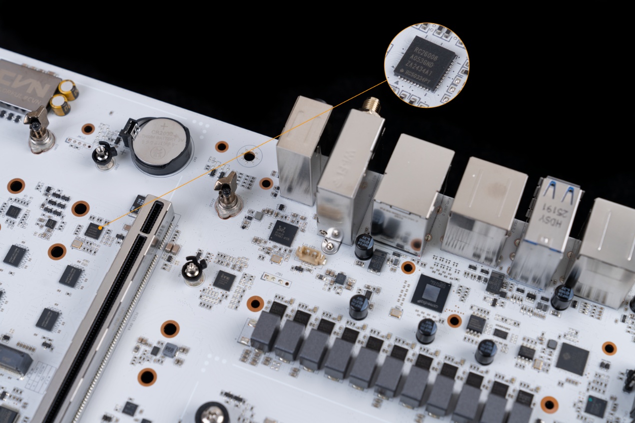 ▲瑞萨RC26008,独立时钟发生芯片,支持CPU外频调整,为超频等需要精细时钟管理的场景提供了更灵活的调节能力。