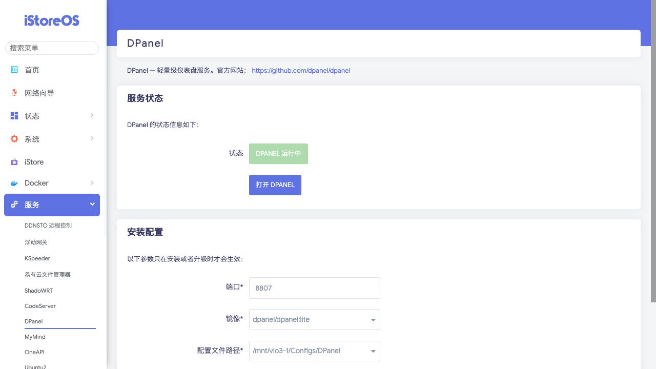 功能位置:服务 > DPanel