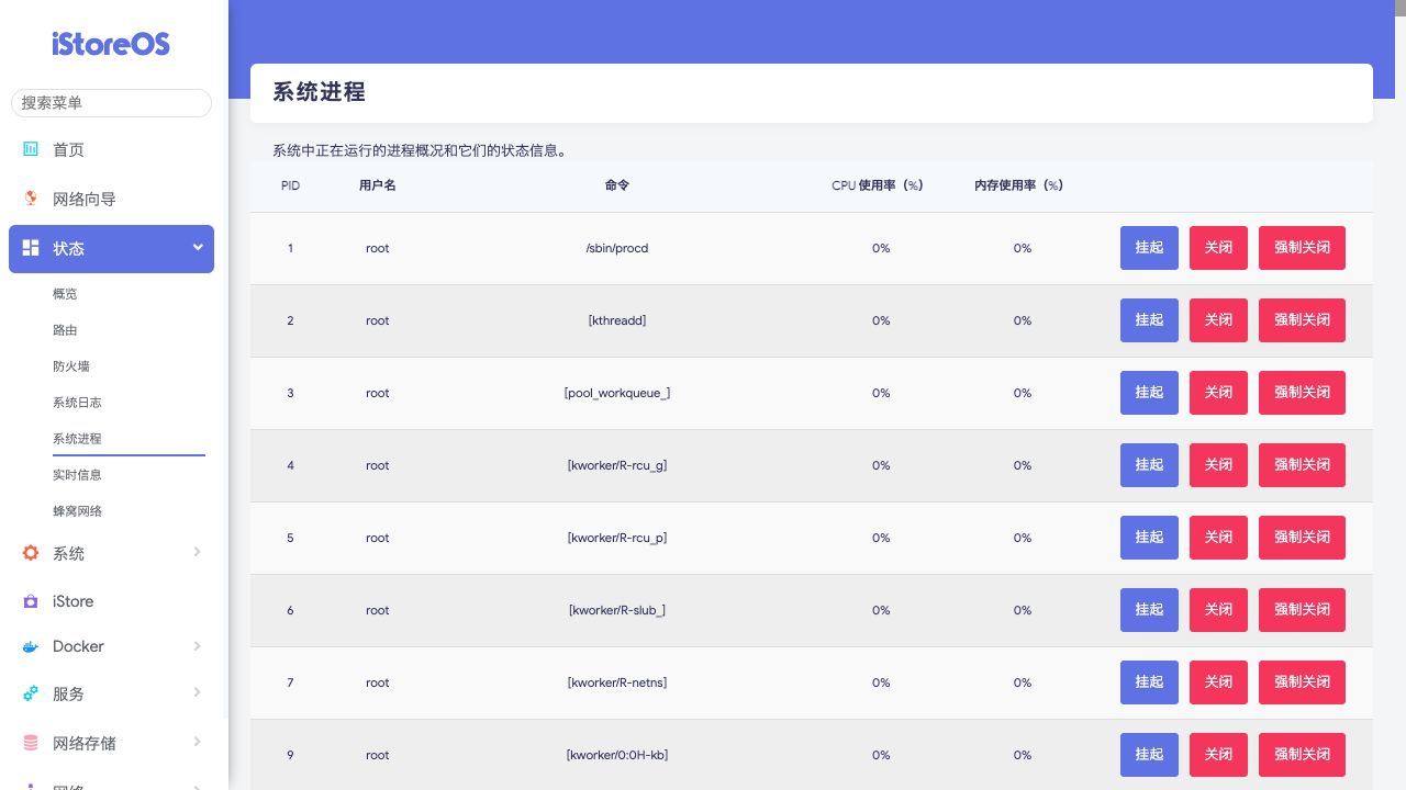 A: 您可以在「状态 > 系统进程」页面的「系统进程」区域查看。