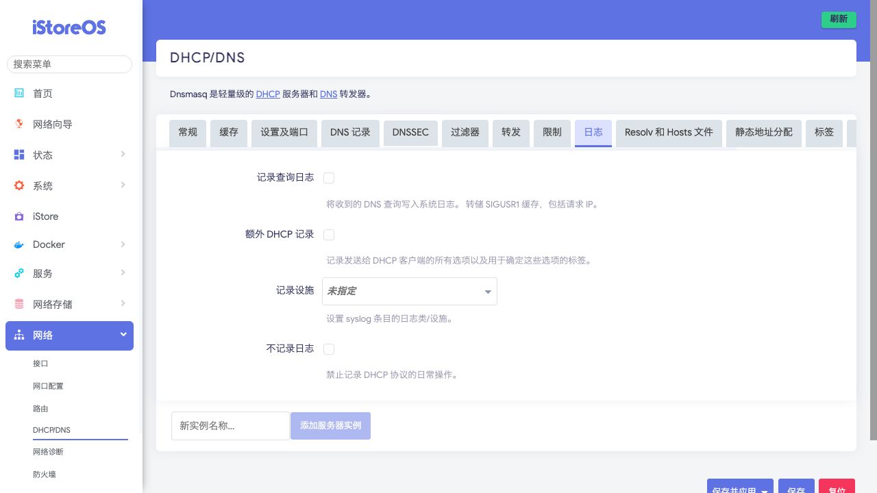 功能说明:勾选后将完全禁用dnsmasq的日志输出,包括查询、错误和状态信息,适用于无需日志记录的环境以减少日志干扰或提升性能。